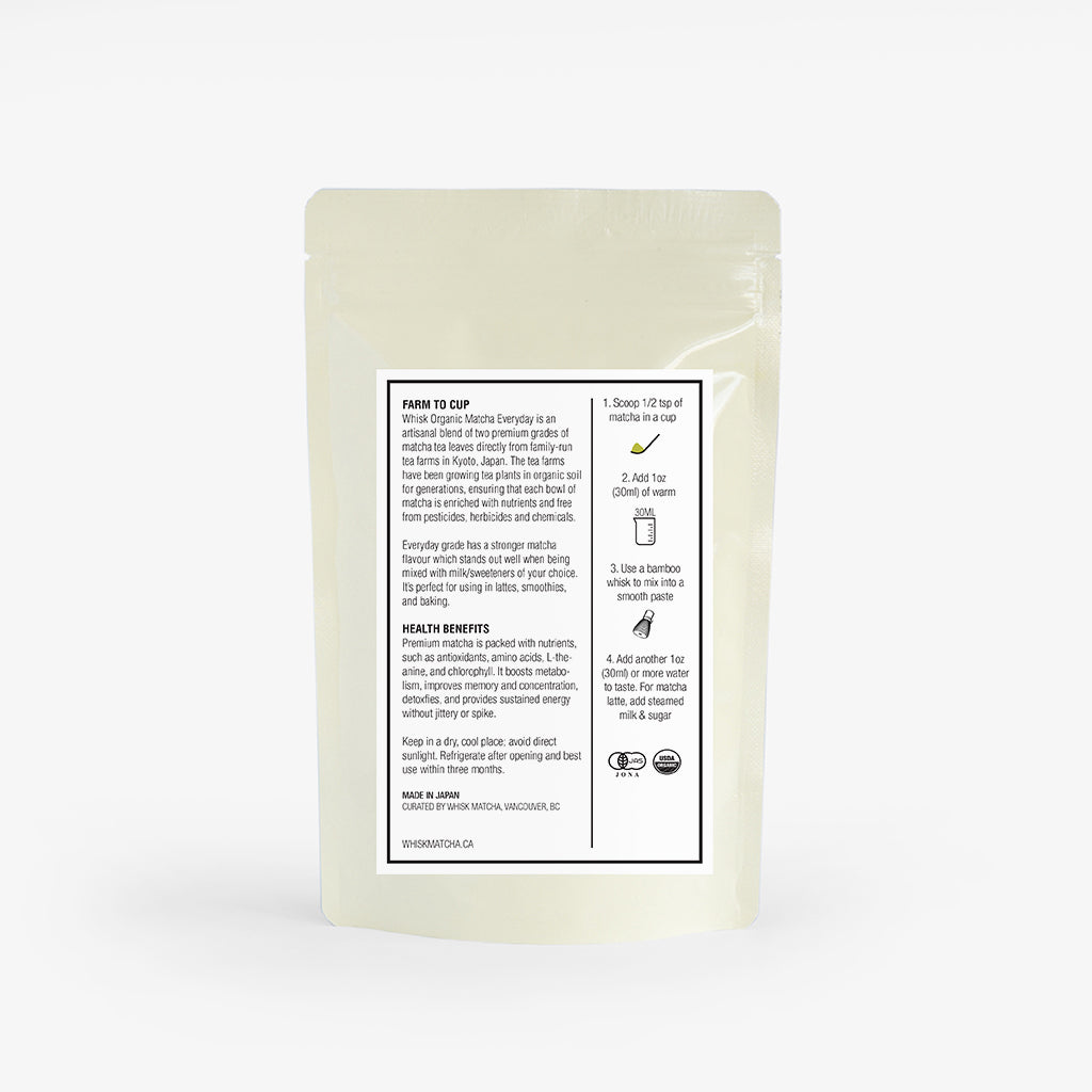 Whisk Organic Matcha series is exclusively and directly from organic tea farms situated in Kyoto, Japan. The family-run farms have been growing tea plants in organic soil for generations, ensuring that each bowl of matcha is enriched with nutrients and free from pesticides and chemicals. Harvested only once a year in spring, Whisk Matcha teas are guaranteed to be fresh and flavoursome